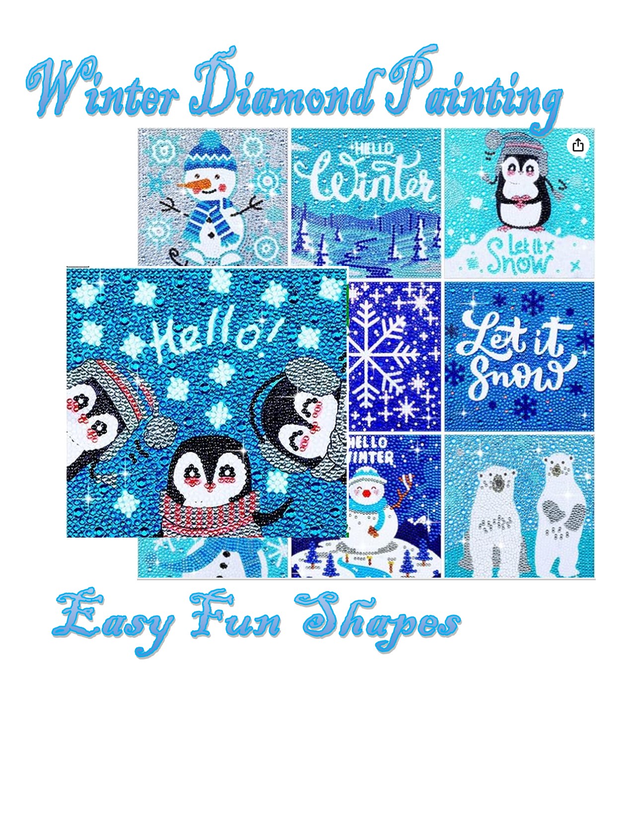 Small 6x6 cute winter pictures that are simple to do and introduce people to the art of diamond painting.